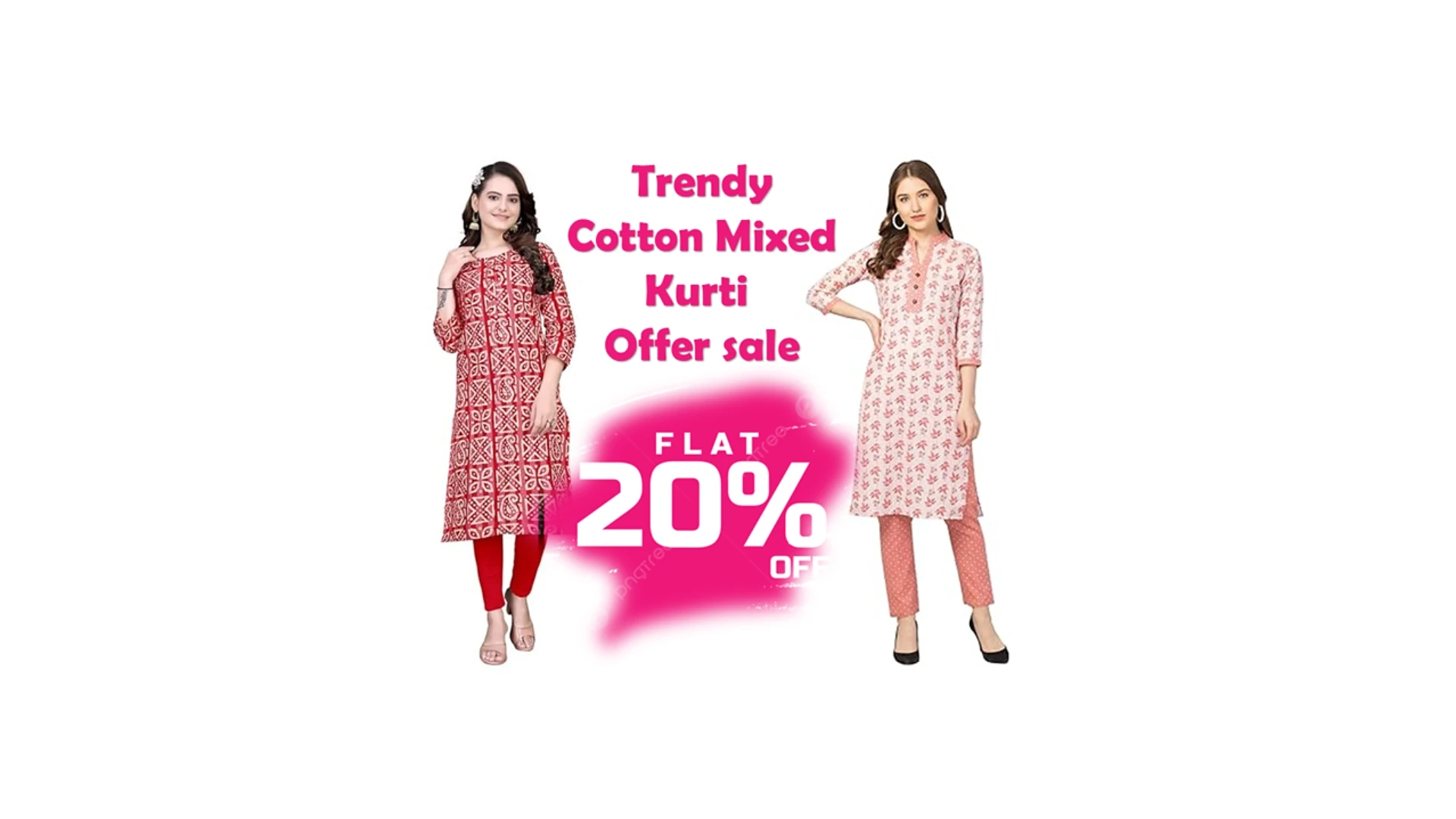 Red and White Printed Kurti Set